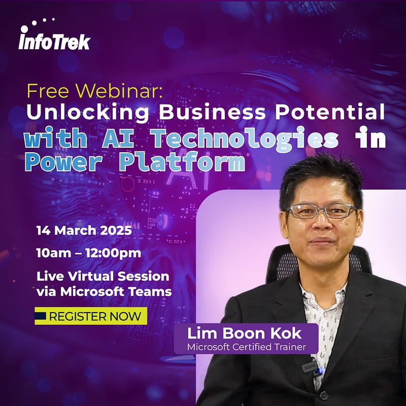 Info Trek is offering a free, two-day hands-on webinar titled “Mastering Data Visualization with Power BI,”. Participants will receive complimentary PL-300 Microsoft Official Courseware upon registration. The webinar will be conducted live online by Microsoft Certified Trainer Jarina Ismail, who has extensive experience in delivering Microsoft Power BI training. Agenda Day 1: Data Connection & […]